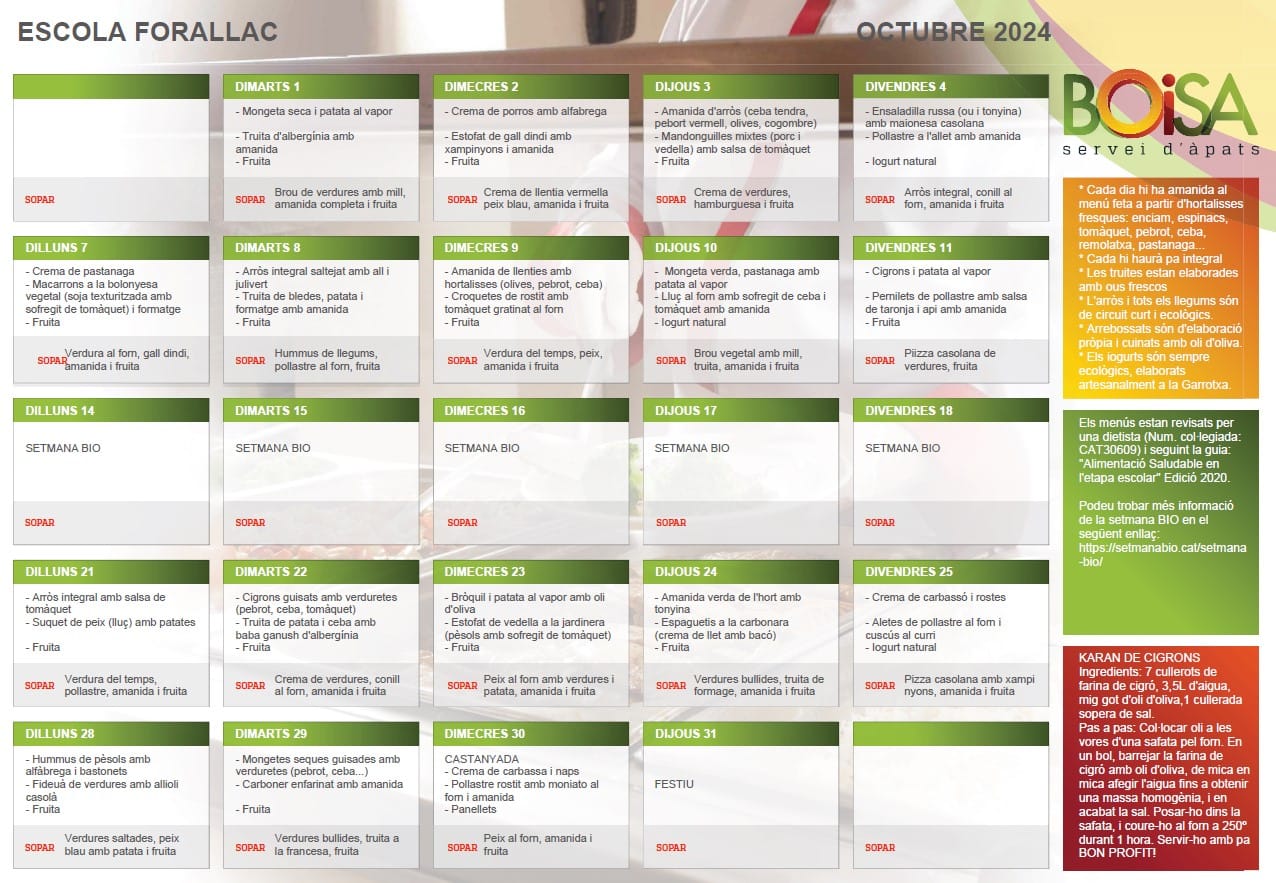 Aquí us deixem totes les actes de les reunions entre Consell Comarcal, Comissió Menjador – AFA Forallac, Escola, i Empresa que dóna servei menjador.